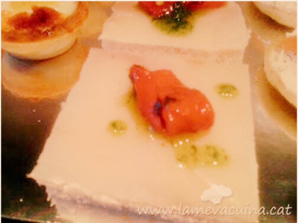 PAS 3: Guarnim amb una tireta de pebrot del piquillo en conserva i unes gotetes d’oli de julivert.