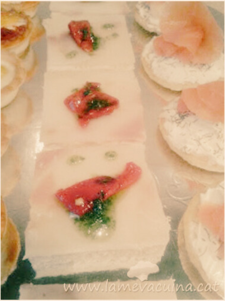 Amb el bacallà fumat també podem fer canapès bons i vistosos i canviar el color de la taula.